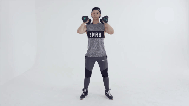 4.當上臂與地麵平行時,將啞鈴舉回起始位置後重新開始。