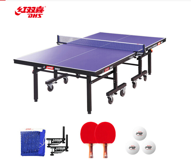 紅雙喜DHS 乒乓球桌室內乒乓球台訓練比賽用乒乓球案子T1223贈網架/球拍/三星球