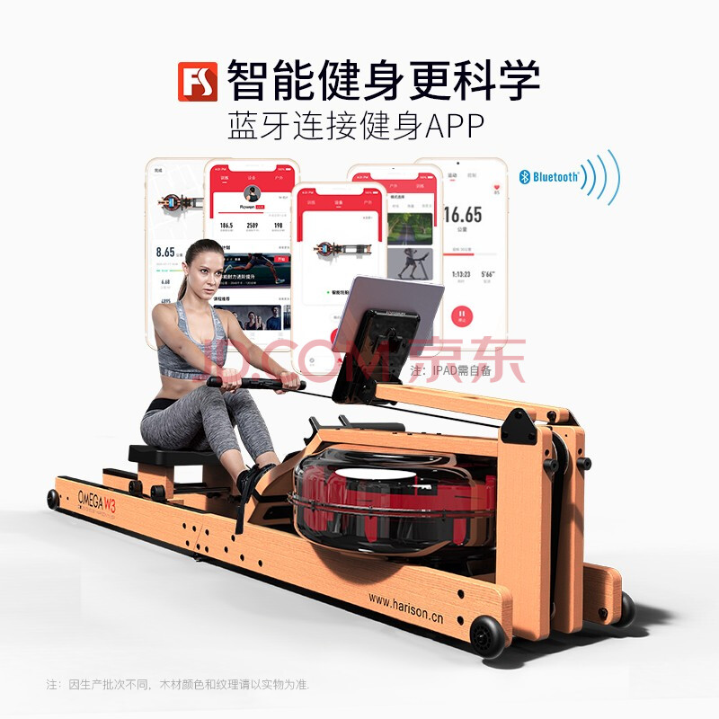HARISON漢臣劃船機W3家用木質水阻商用運動劃船器智能健身器材