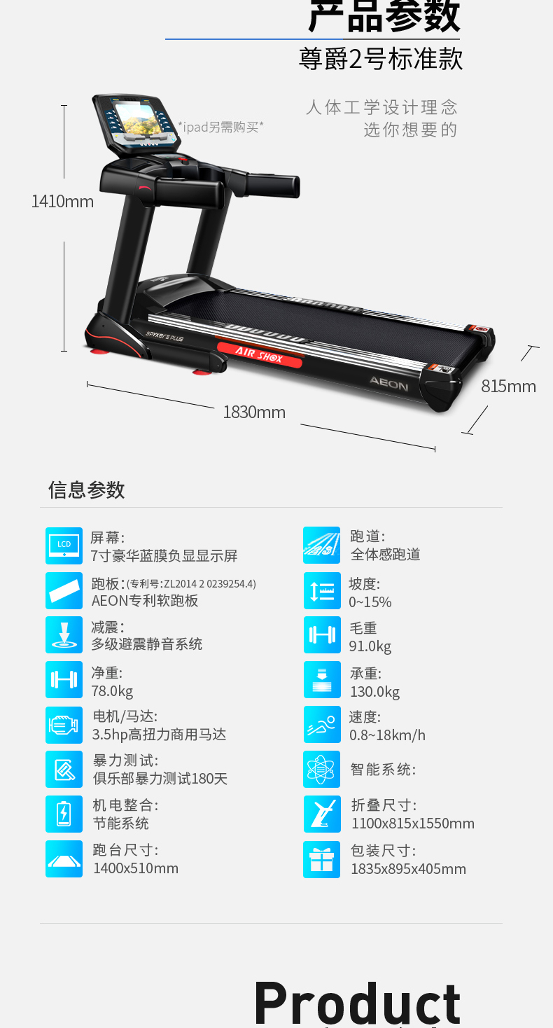 | 跑帶區域 | 138x51cm | 展開尺寸 | 183x81x141cm |
